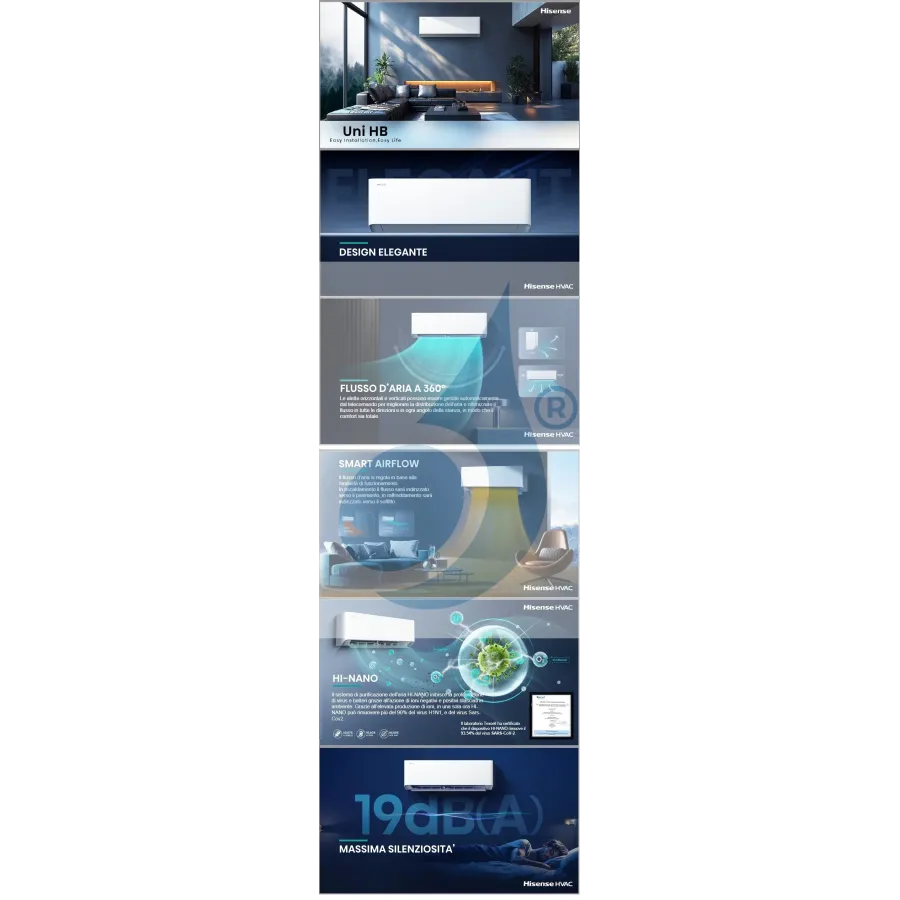 - Hisense Inverter-Klimaanlagen verfügen über fortschrittliche Technologien, um Effizienz, Energieeinsparung, Ruhe und Komfort zu gewährleisten.
