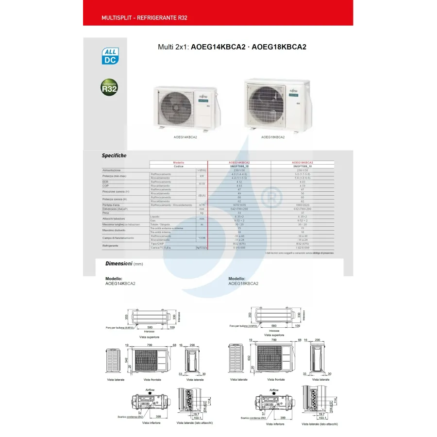 Fujitsu Duo Split 9000+9000 Btu AOEG14KBCA2 ASEH09KMCG ASEH09KMCG Klimaanlage Weiß KMCG WiFi R-32 A+++ A++