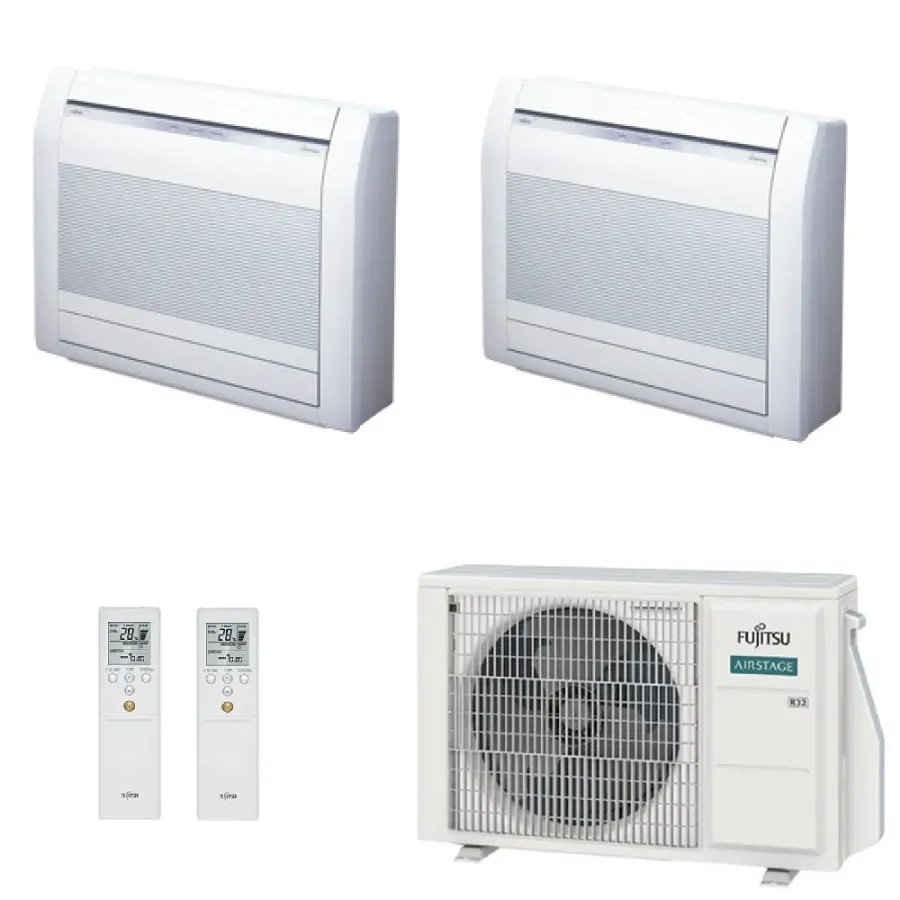Klimaanlagen Fujitsu Duo Split Serie Fußboden KV WiFi Optional 9000+9000 Btu Heizung mit Wärmepumpe mit Niedrigenergieverbrauch Invertertechnologie ideal für Dachböden oder Installationen unter Fenstern, optimal zum Heizen durch die Position in Bodennähe