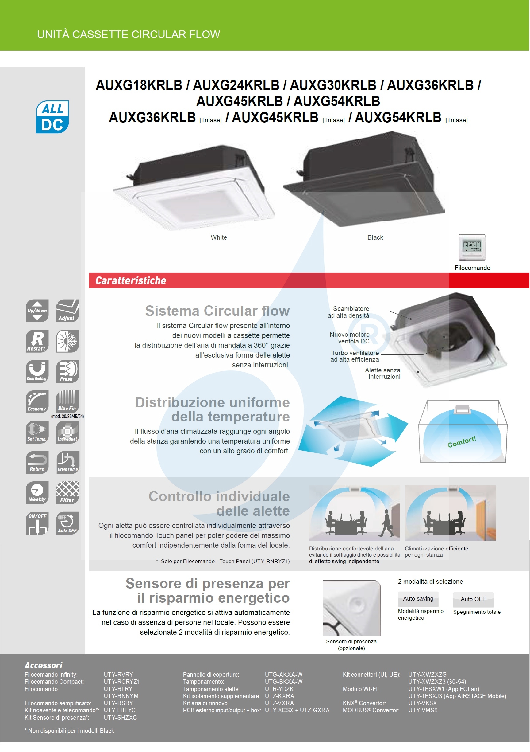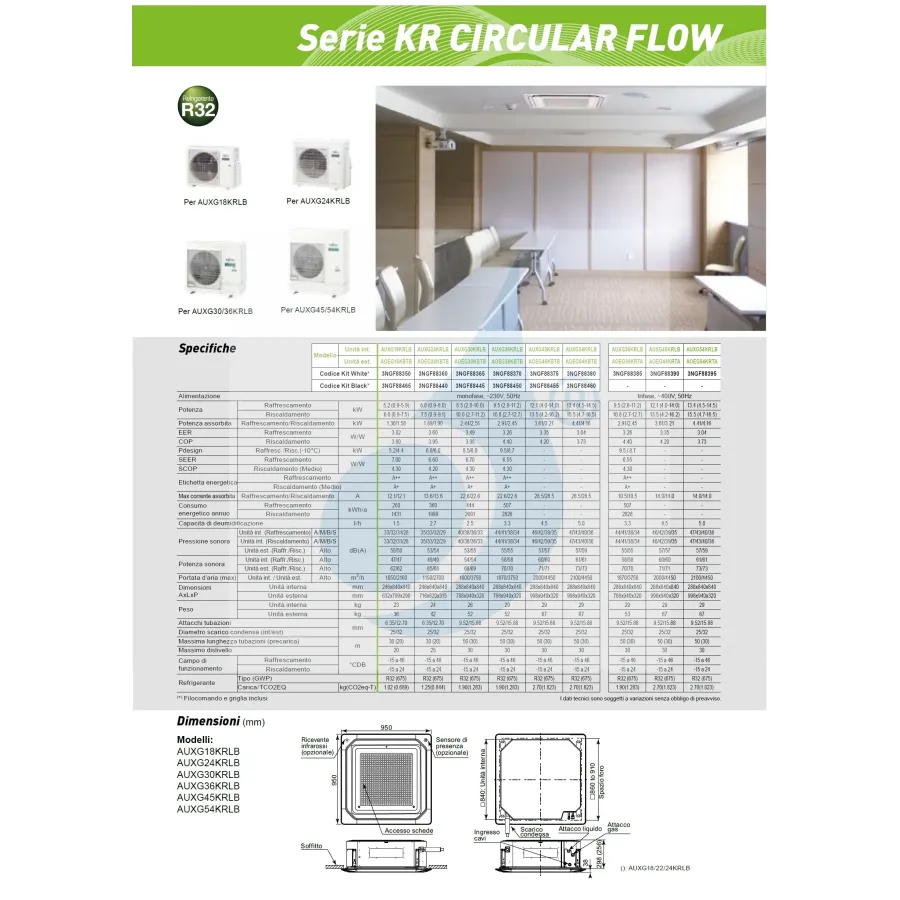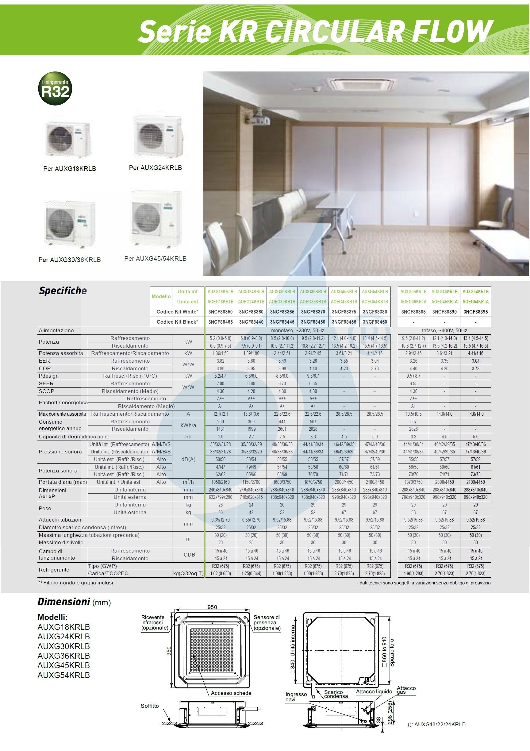 Fujitsu Mono Split Kassettengerät 18000 Btu AUXG18KRLB AOEG18KBTB Klimaanlage Serie KR Circular Flow Weiß R-32 Einphasig 220v