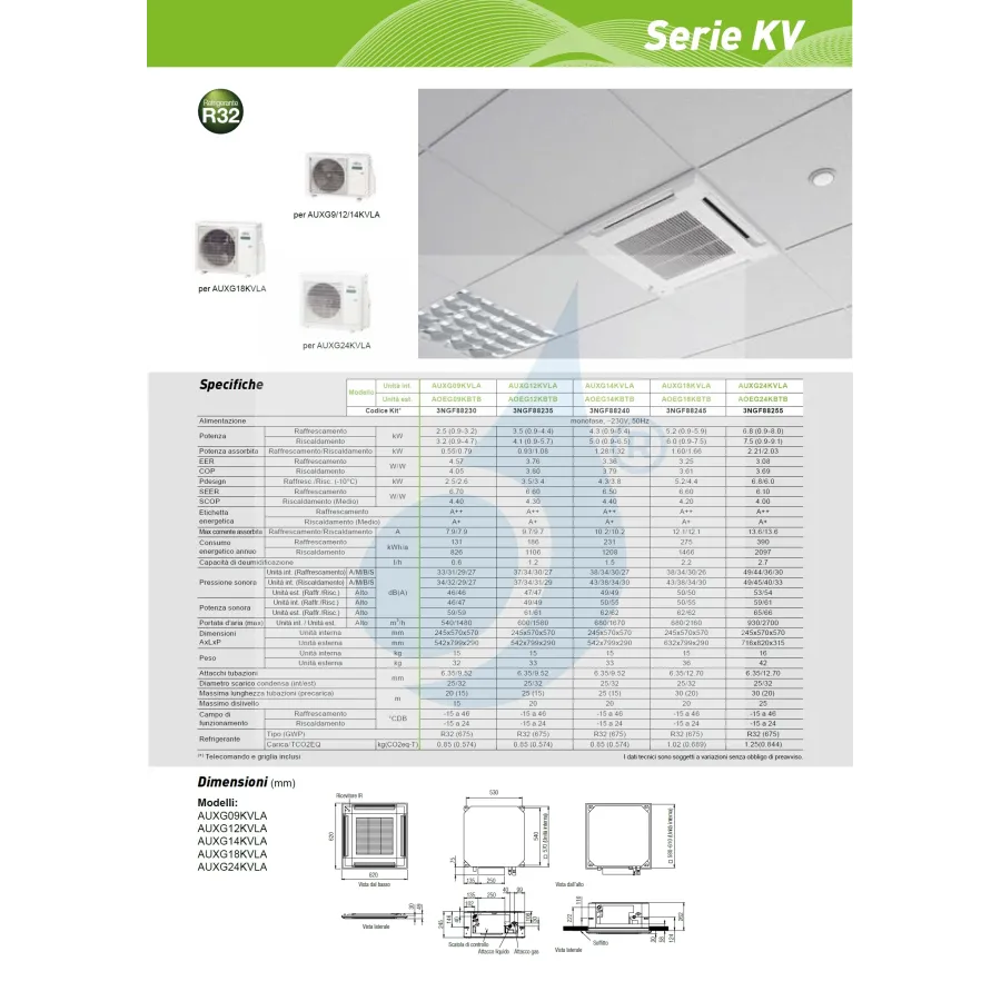 Interne Kassetteneinheit AUXG24KVLA 24.000 BTU 7.1 kW Kompakte KV-Serie