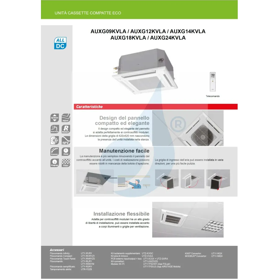 Interne Kassetteneinheit AUXG24KVLA 24.000 BTU 7.1 kW Kompakte KV-Serie