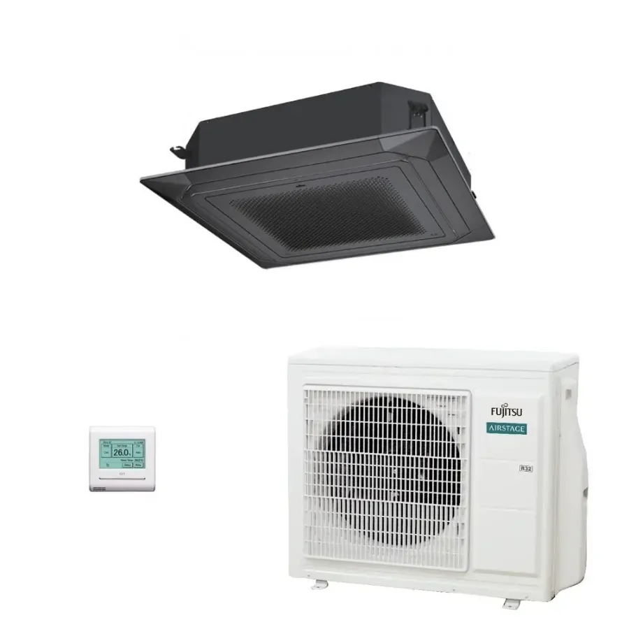 Fujitsu Mono Split Kassettengerät 24000 Btu AUXG24KRLB AOEG24KATA Klimaanlage Serie ECO KR Circular Flow Schwarz R-32 Einphasig