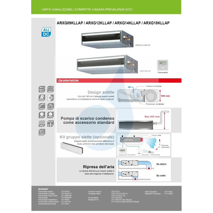 Interne Kanaleinheit ARXG12KLLAP 12.000 BTU 3.5 kW Kompakte Niederdruckpumpe der KL-Serie