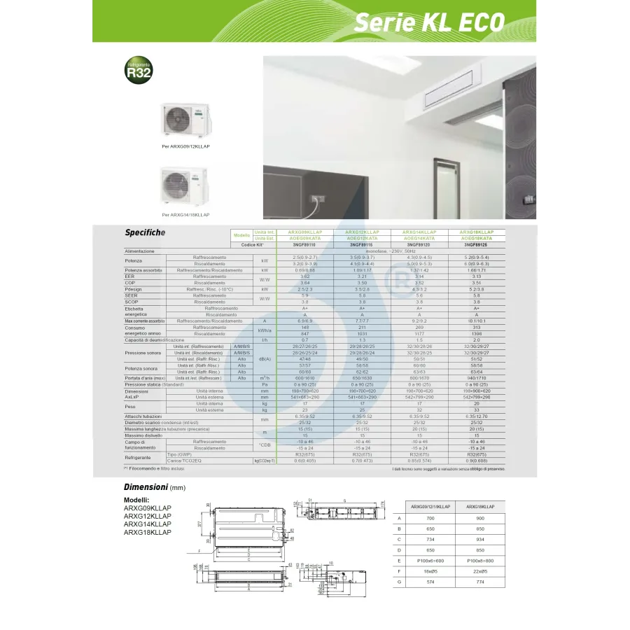 Fujitsu Mono Split Kanalisierbar 12000 Btu ARXG12KLLAP AOEG12KATA Klimaanlage Serie ECO KL Kanal R-32 Einphasig 220v