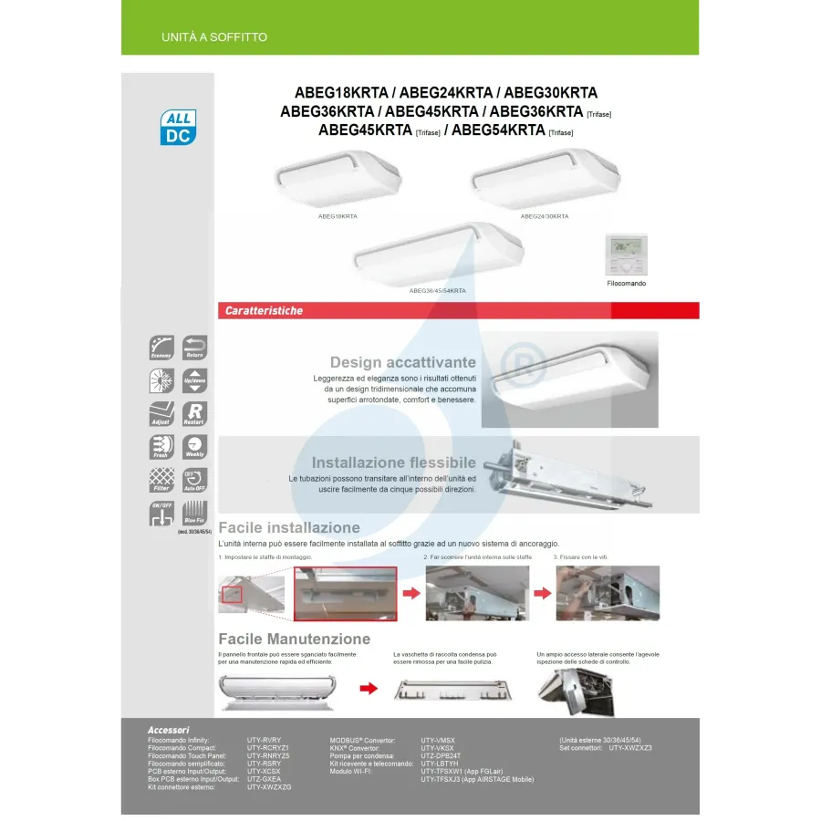 Fujitsu Mono Split Decke 54000 Btu ABEG54KRTA AOEG54KRTA Klimaanlage Serie KR R-32 Dreiphasig 380v