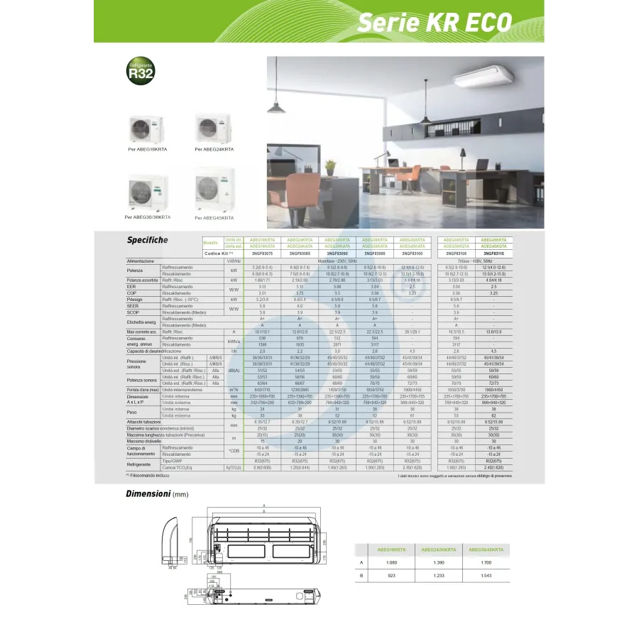 Fujitsu Mono Split Decke 45000 Btu ABEG45KRTA AOEG45KQTA Klimaanlage Serie Eco KR R-32 Dreiphasig 380v
