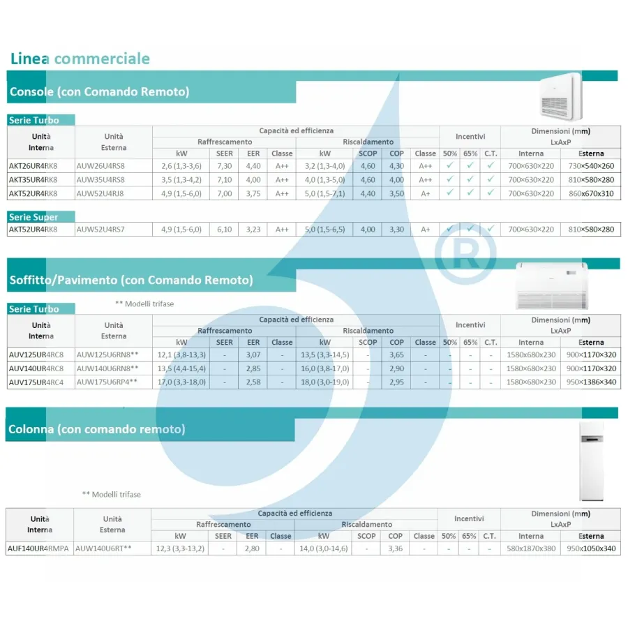 AUD200UX4RPH8 68.000 BTU 20.0 kW Serie CanalizzatoAlta Prevalenza