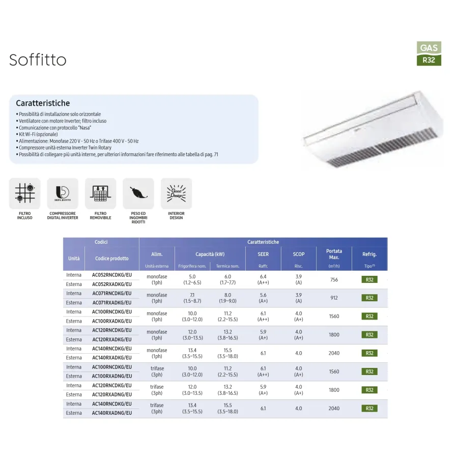 Klimaanlagen Samsung Mono Split Serie Decke WiFi Optional 47600 Btu Heizung mit Wärmepumpe mit Niedrigenergieverbrauch Invertertechnologie