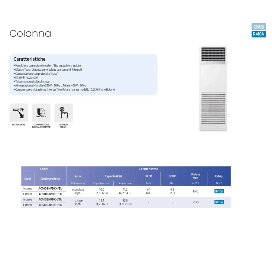 Interne Säuleneinheit AC140BNPDKH/EU 48.000 BTU 14.0 kW