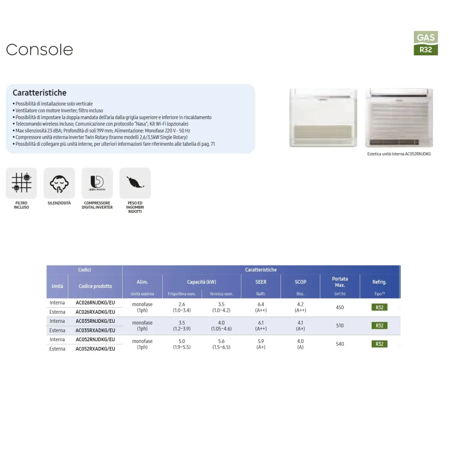 Samsung Mono Split Fußboden Console 9000 Btu 220v AC026RNJDKG/EU AC026RXADKG/EU Klimaanlagen Weiß R-32