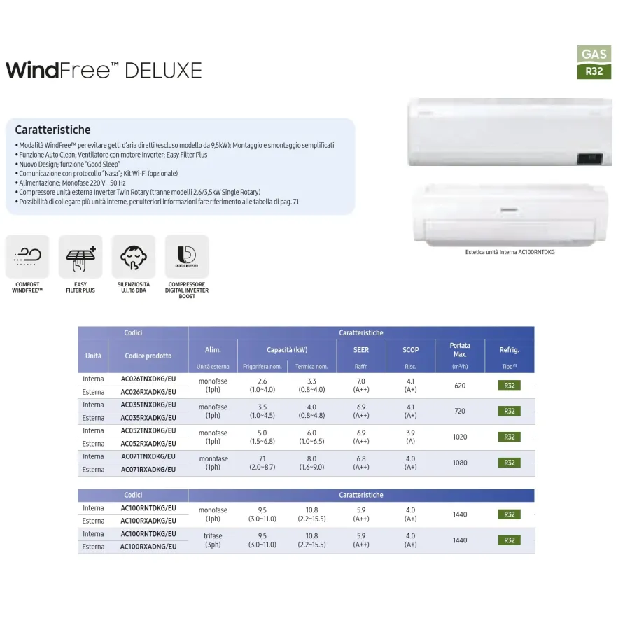 - WindFree-Modus zur Vermeidung direkter Luftstrahlen (ausgenommen 9,5-kW-Modell); Einfache Montage und Demontage- Auto-Clean-Funktion; Lüfter mit Invertermotor; Easy Filter Plus
