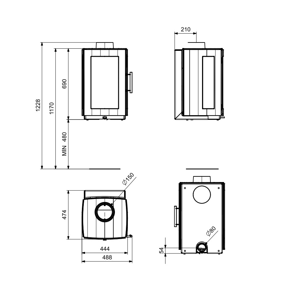- Rauchrohrdurchmesser: 150 mm