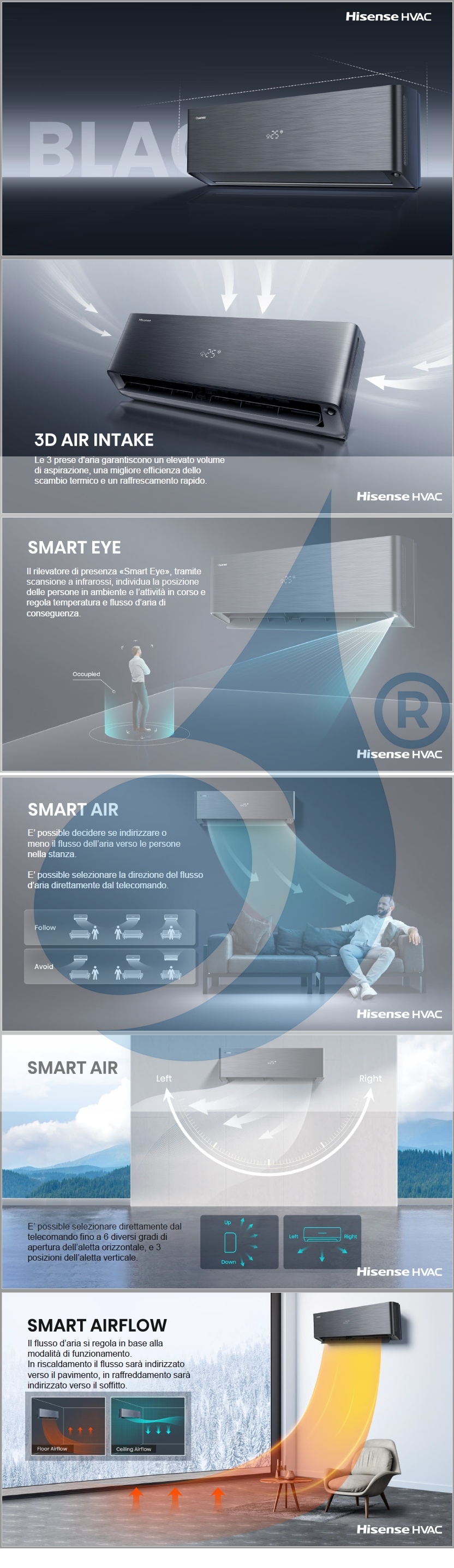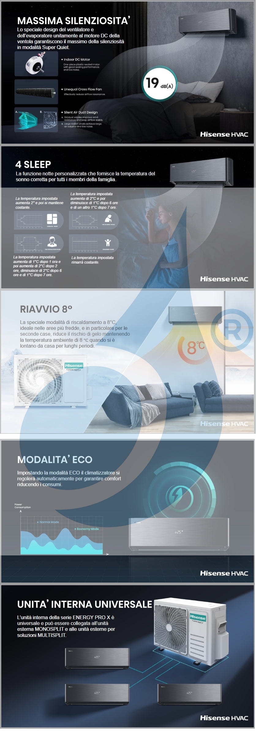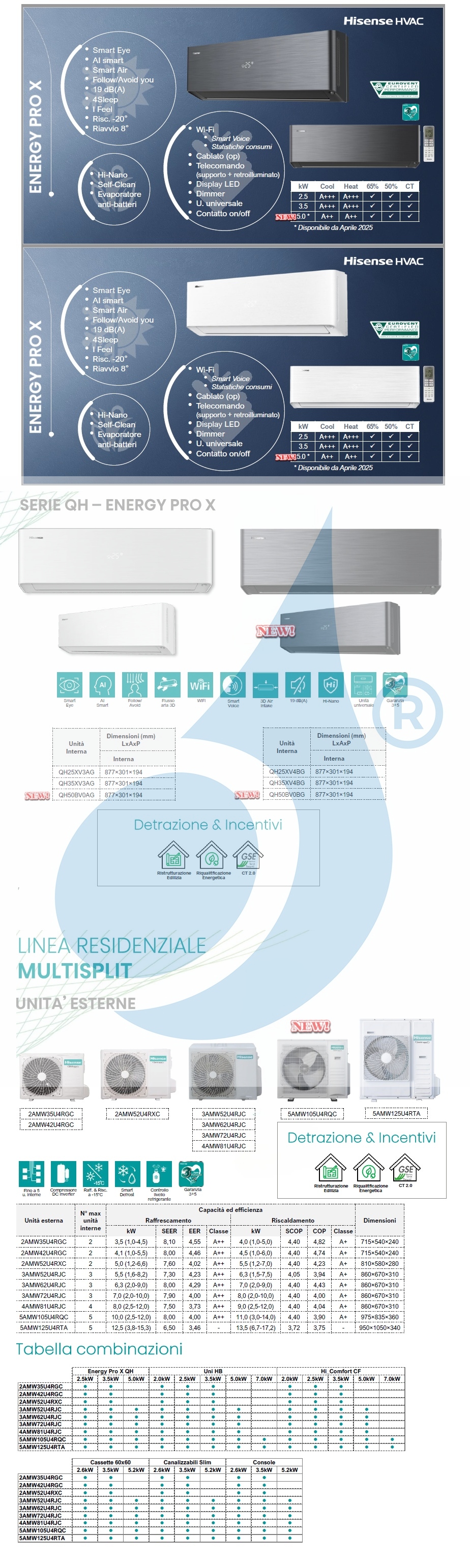Klimageräte Hisense Inneneinheit Serie Energy PRO X WiFi 18000 Btu kombinierbar mit externem Motor für Heizfunktionen mit hocheffizienter Wärmepumpe mit niedrigem Energieverbrauch, Luftentfeuchter