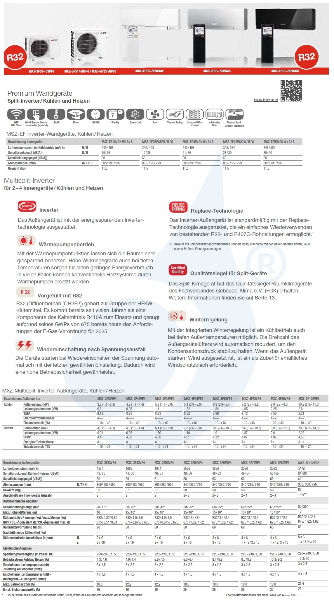 Download Technisches Datenblatt Multi Split Premium Serie MSZ-EF Wand Kirigamine ZEN