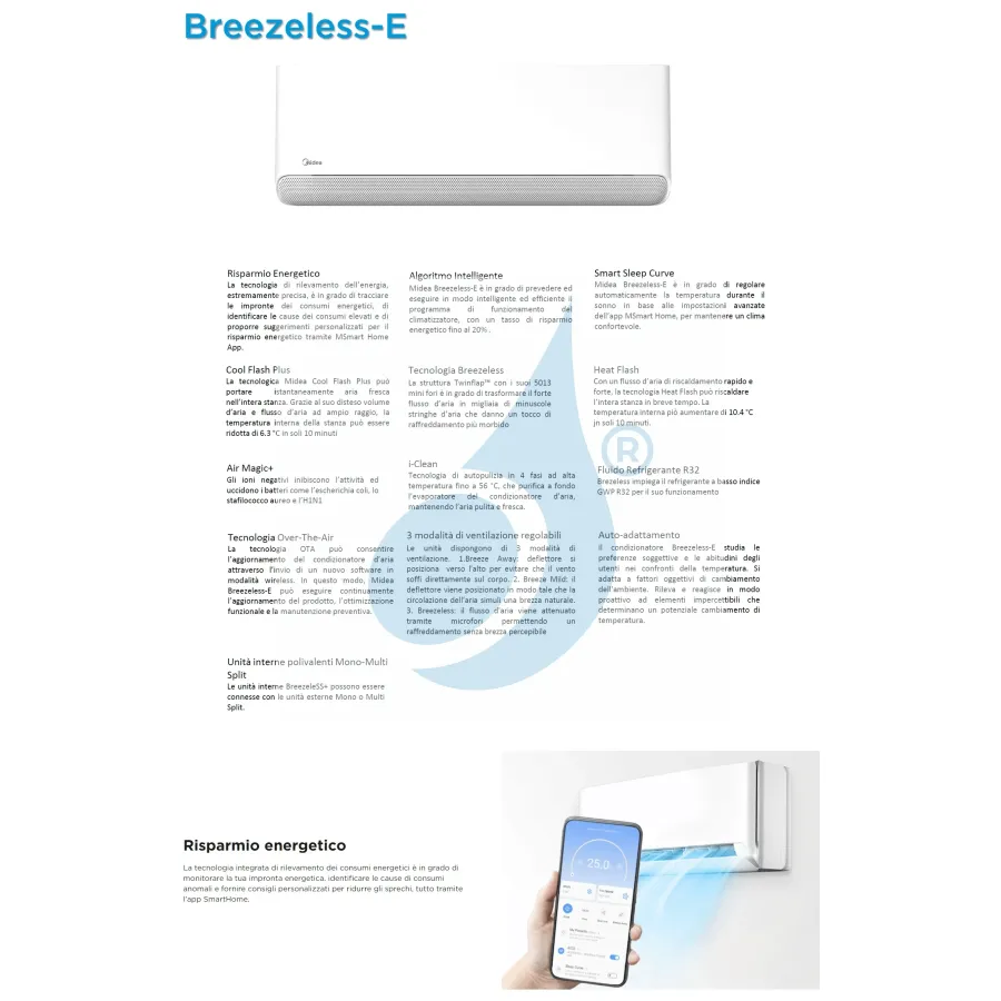 Klimageräte Midea Mono Split Serie Breezeless E WiFi Breezeless E Btu Heizung mit hocheffizienter Wärmepumpe mit geringem Energieverbrauch, Luftentfeuchter