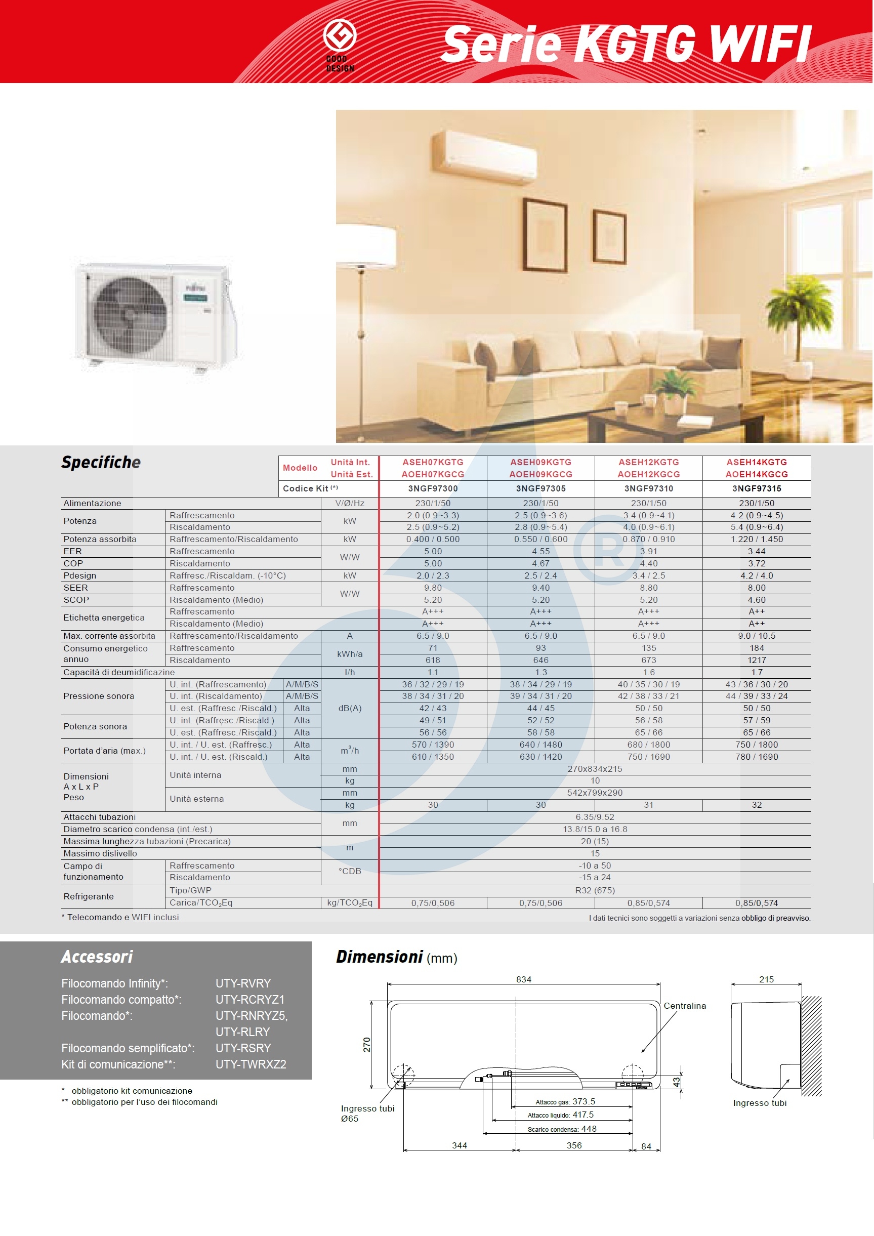 Klimaanlagen Fujitsu Mono Split Serie KGTG WiFi 9000 Btu Heizung mit Wärmepumpe mit Niedrigenergieverbrauch Invertertechnologie