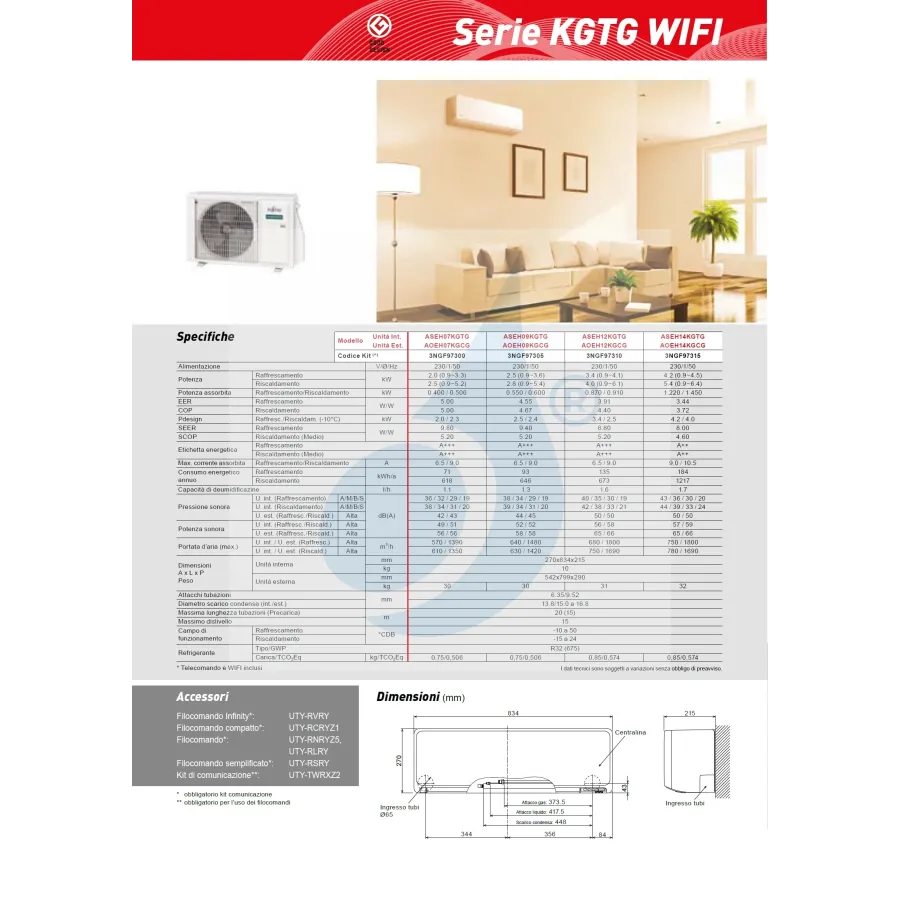 Klimaanlagen Fujitsu Mono Split Serie KGTG WiFi 12000 Btu Heizung mit Wärmepumpe mit Niedrigenergieverbrauch Invertertechnologie