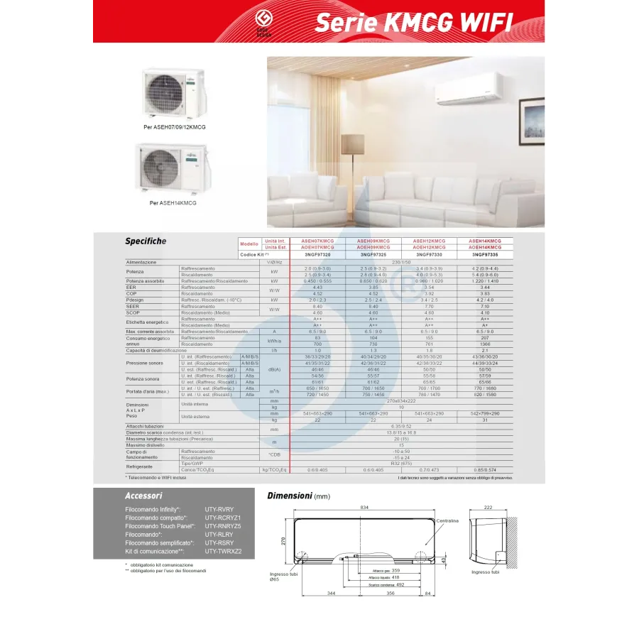 Fujitsu Mono Split 12000 Btu ASEH12KMCG AOEH12KMCG Klimaanlage Weiß KMCG WiFi A++ A+ R-32
