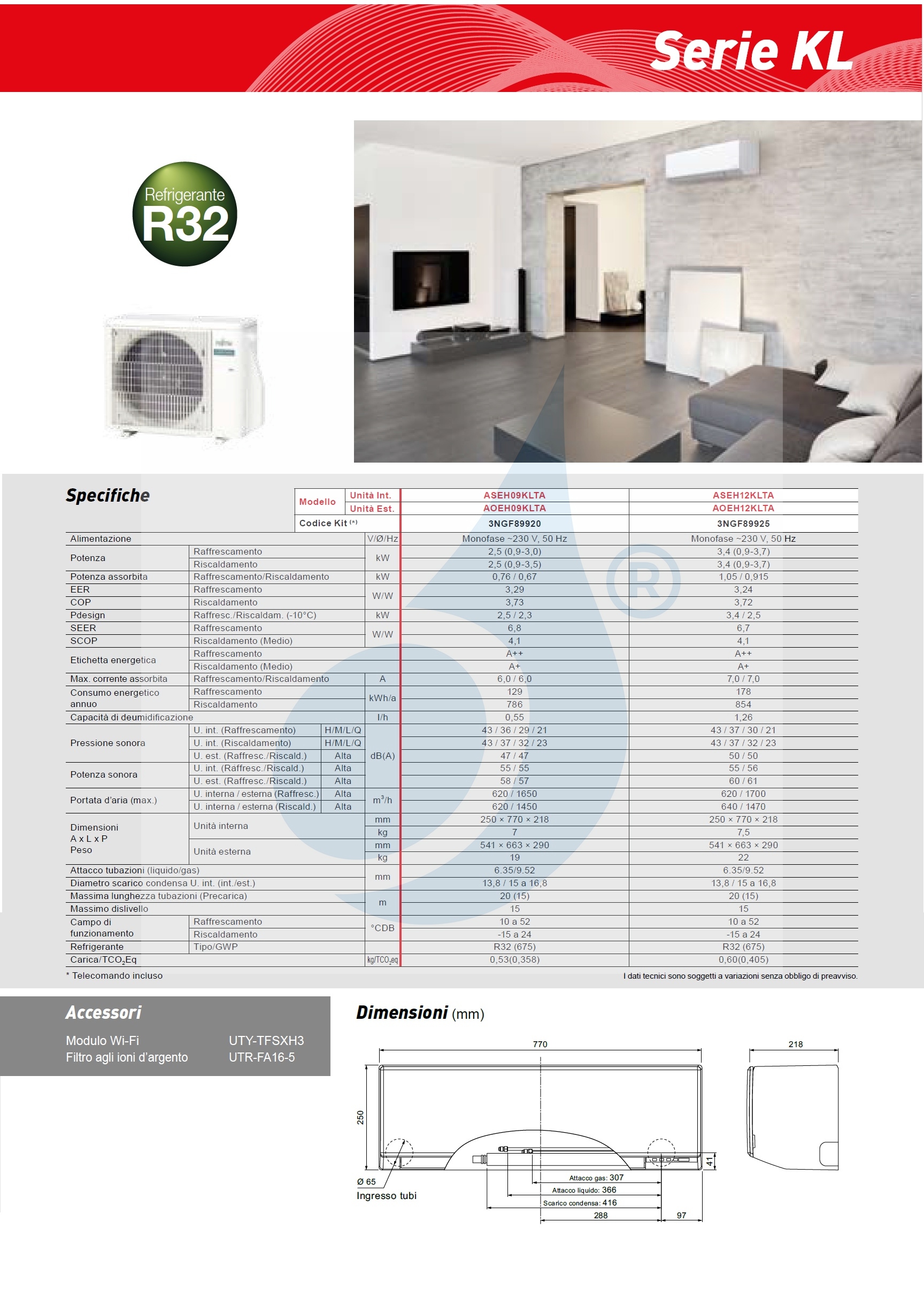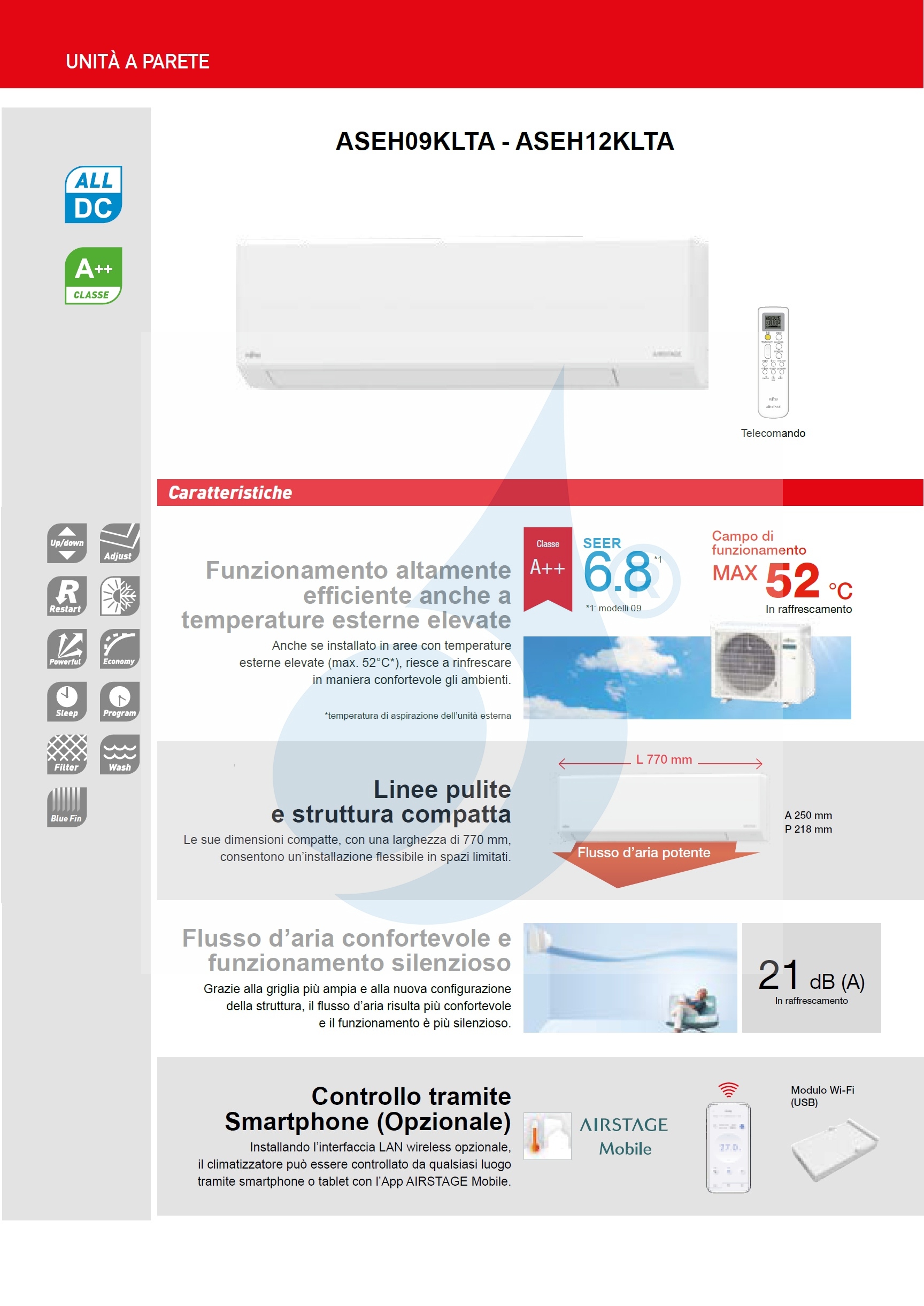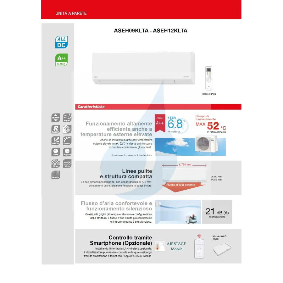 Fujitsu Mono Split 12000 Btu ASEH12KLTA AOEH12KLTA Klimaanlage Weiß KL WiFi Optional A++ A+ R-32