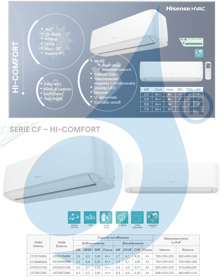Hisense Mono Split 12000 Btu CF35MR0BG AS35MR0BW Klimaanlagen Serie Hi Comfort Weiß WiFi A++ A+ Inverter R-32