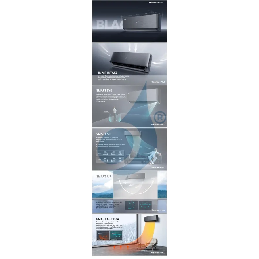Hisense Mono Split 12000 Btu QH35XV4BG AS35XV04W Klimaanlagen Serie Energy PRO X Schwarz WiFi A+++ A+++ Inverter R-32