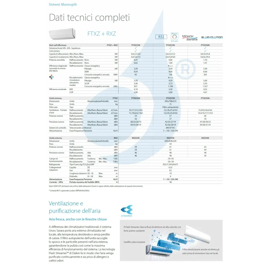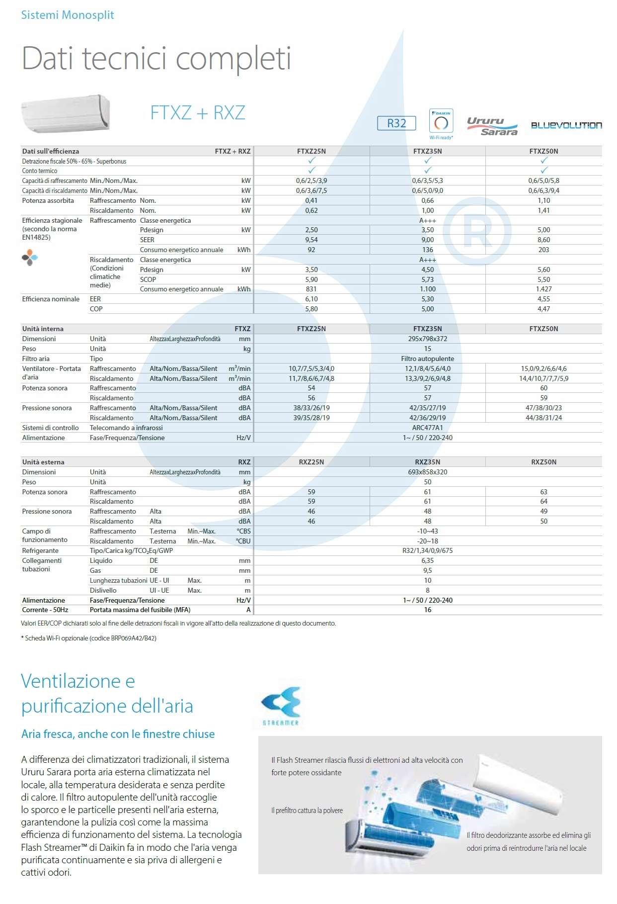 Daikin Mono Split 5.0 kW FTXZ50N RXZ50N Klimaanlagen Serie Ururu Sarara FTXZ-N Weiß WiFi Optional 18000 Btu R-32