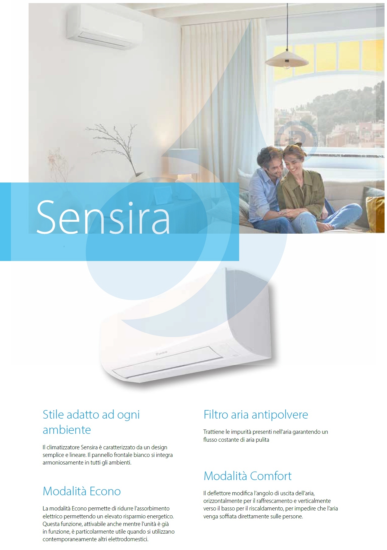 Klimaanlage Daikin Mono Split serie Sensira WiFi Optional 24000 Btu Heizung mit Schwachstrom-Absorptionswärmepumpe in hoher Energieklasse Luftentfeuchterfunktion, Luftreinigung mit Eliminierung von Viren und Bakterien