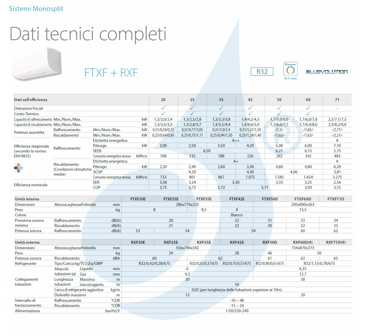 Daikin Mono Split 7.1 kW FTXF71F RXF71D9 Klimaanlagen Serie Sensira Weiß WiFi Optional 24000 Btu R-32