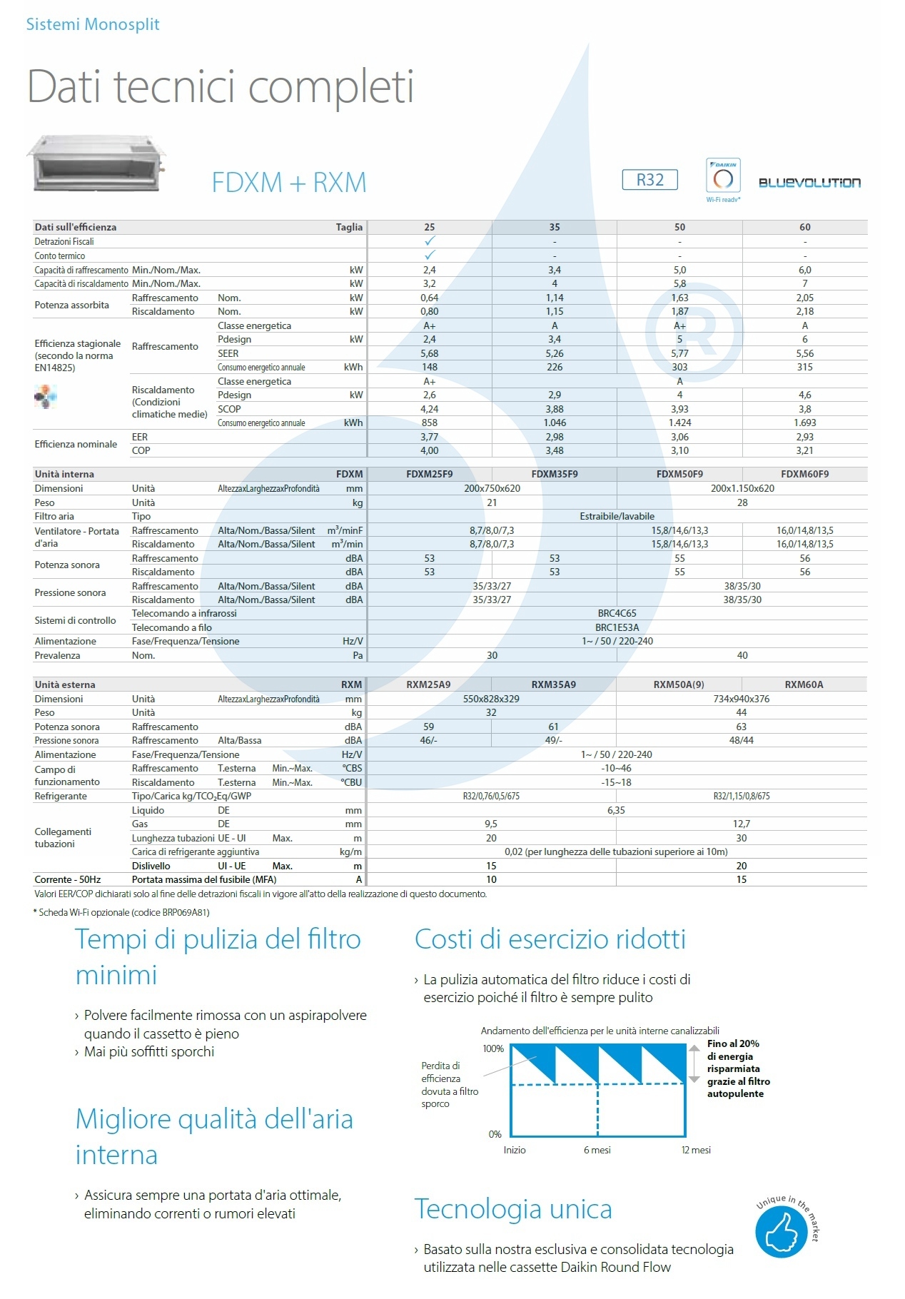 Klimaanlage Daikin Mono Split serie FDXM-F9 WiFi Optional 12000 Btu Heizung mit Schwachstrom-Absorptionswärmepumpe in hoher Energieklasse Kompaktes Unterputzgerät mit einer Höhe von nur 200 mm