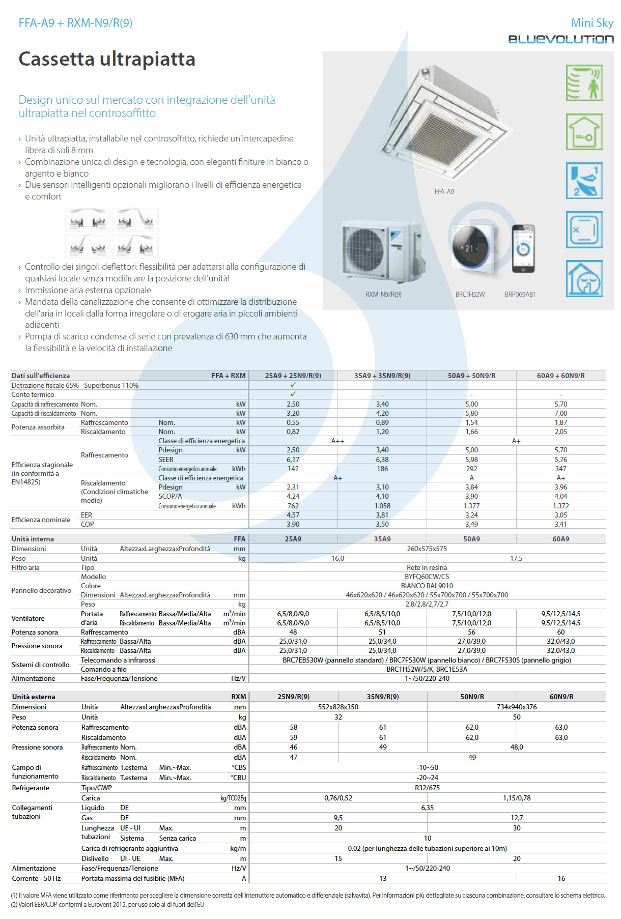 Inneneinheiten Daikin Ultraflache 4-Wege-Kassette FFA-A9 + RXM-N9
