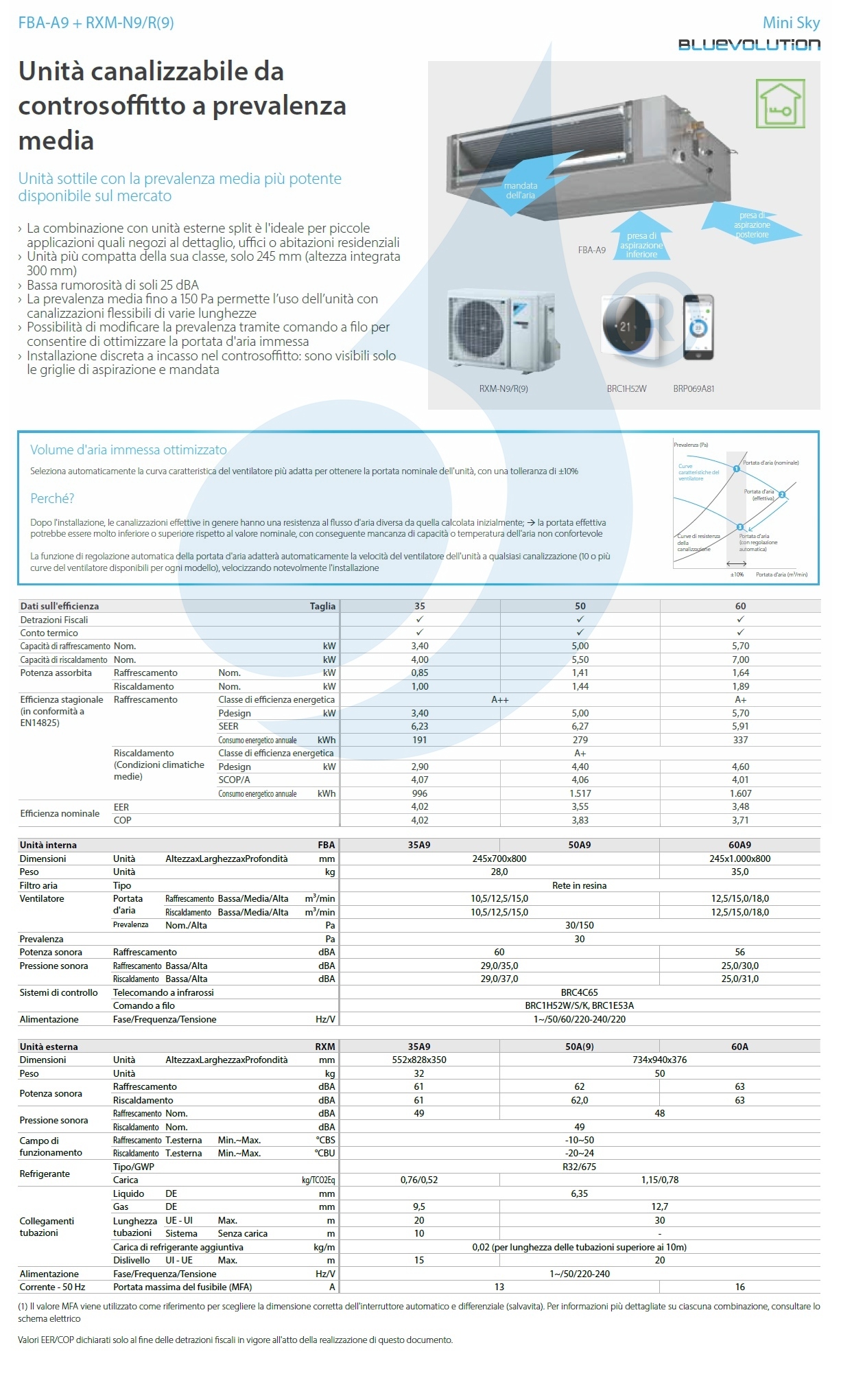 Kanalisierbare Innengeräte mit mittlerem statischem Druck von Daikin FBA-A9 + RXM-N9