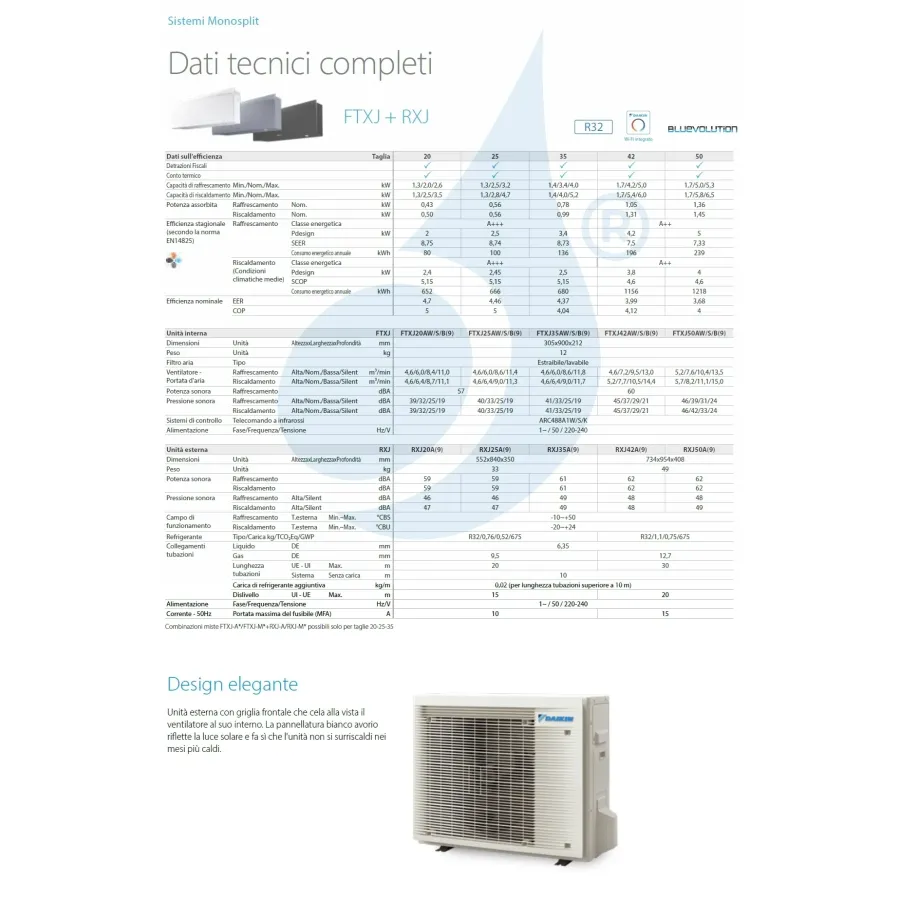 Daikin Mono Split 4.2 kW FTXJ42AW9 RXJ42A9 Klimaanlagen Serie Emura 3 Weiß Weiß WiFi 15000 Btu R-32