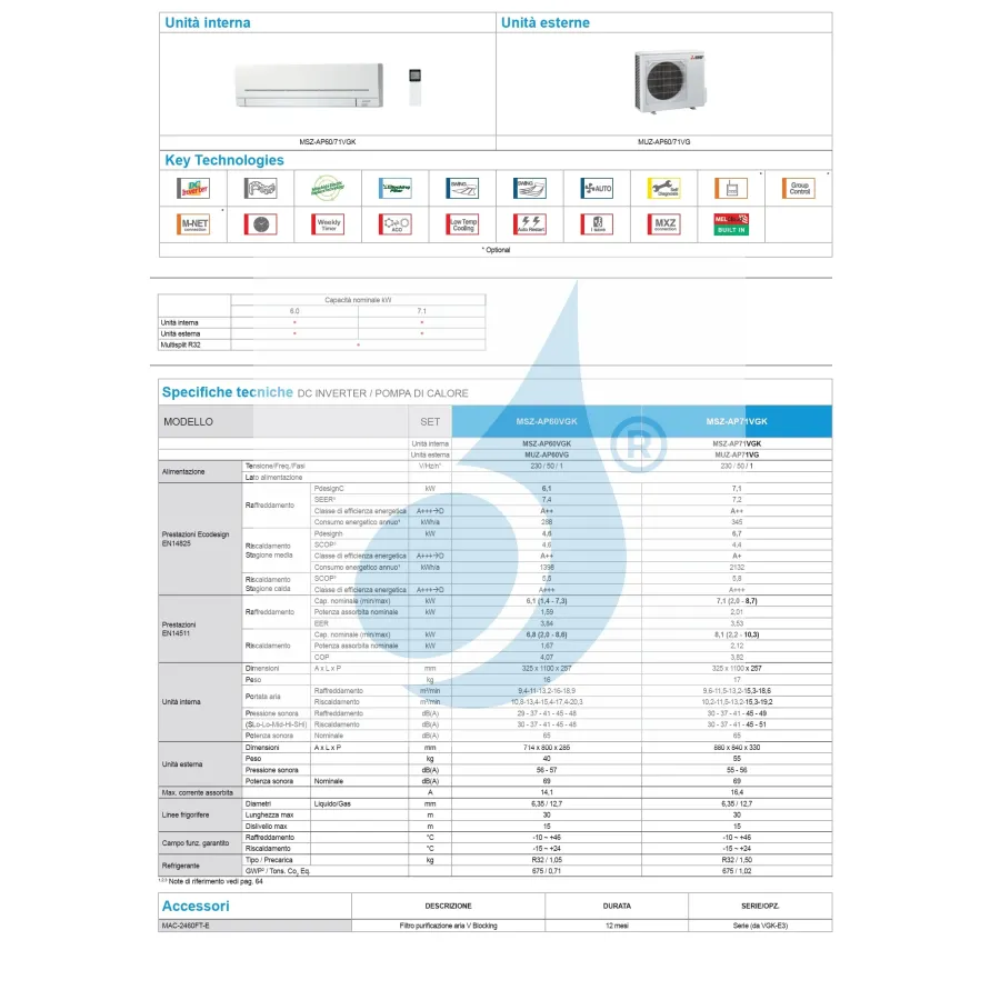 MUZ-AP71VG 24.000 BTU 7,1 kW