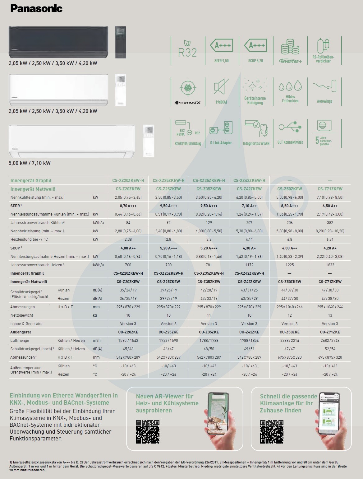- WiFi-Steuerung über integriertes Smartphone XZ Etherea WiFi Inverter-Hocheffizienz-Wärmepumpe, hervorragende geräuscharme Klimaregelung, zuverlässige, kalte Wärme mit Luftentfeuchter. Energiebewertung CU-Z50ZKE A++