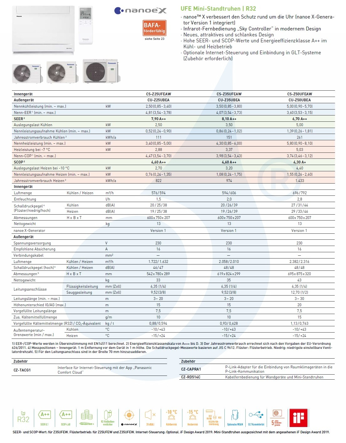 Klimageräte Panasonic Mono Split 18000 Btu CS-Z50UFEAW +CU-Z50UBEA Luftentfeuchterfunktion, Luftreinigung mit Beseitigung von Viren und Bakterien Console WiFi Optional Wärmepumpe mit Invertertechnologie Energiebewertung CU-Z50UBEA A++