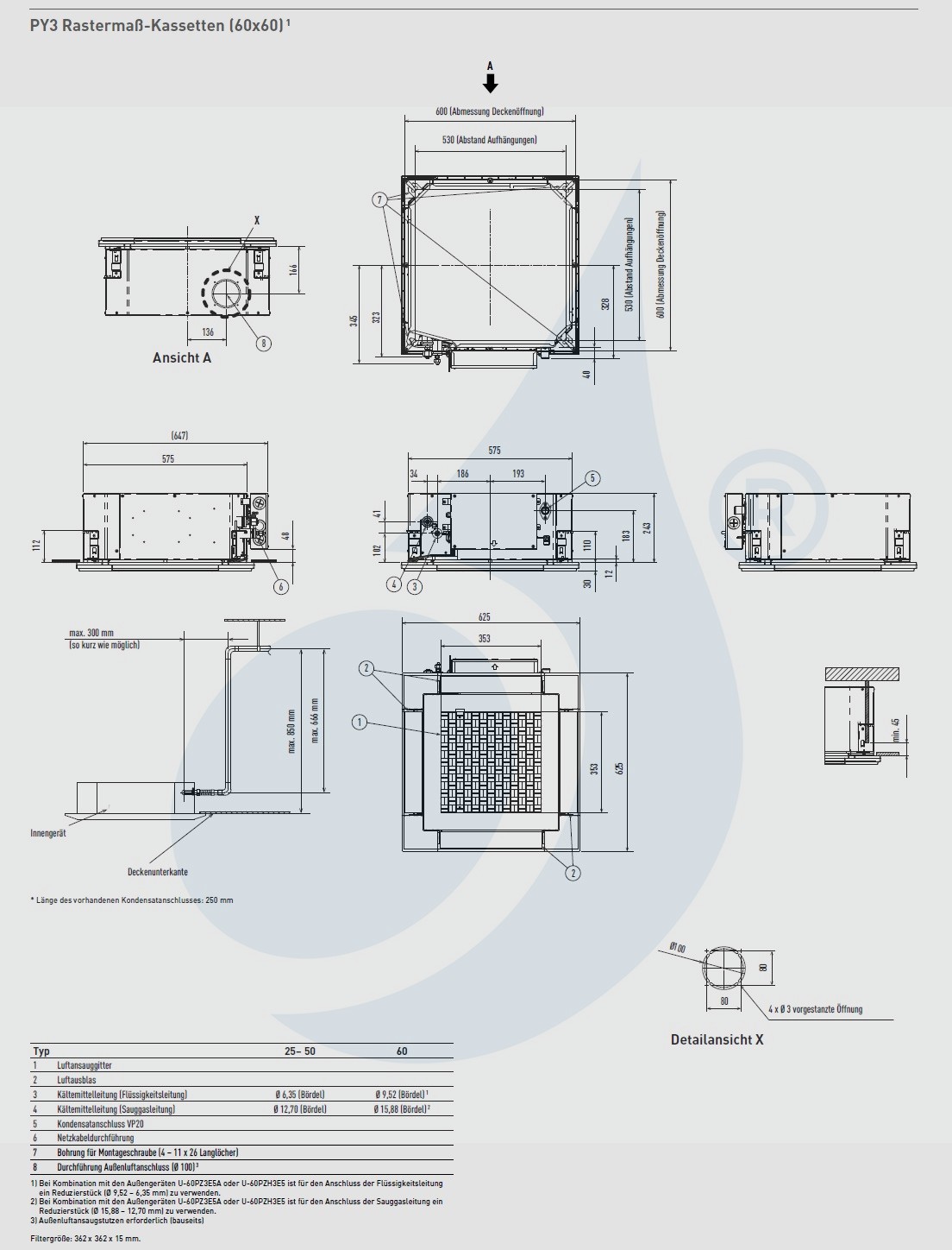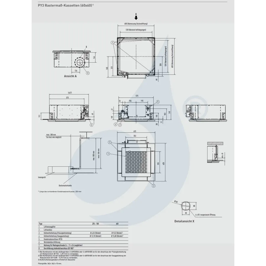 Panasonic 6.1 kW Mono Split S-60PY3E U-60PZ3E5A Klimaanlagen Kassettengerät 60 x 60 4 wege Steuerdraht 21000 Btu R-32