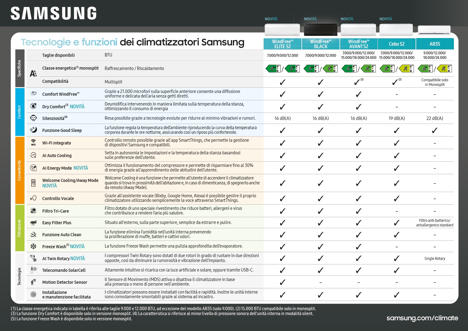 - Integriertes WLAN - Fernsteuerung möglich dank der SmartThings-App, die die Verwaltung von Samsung und kompatiblen Geräten ermöglicht.