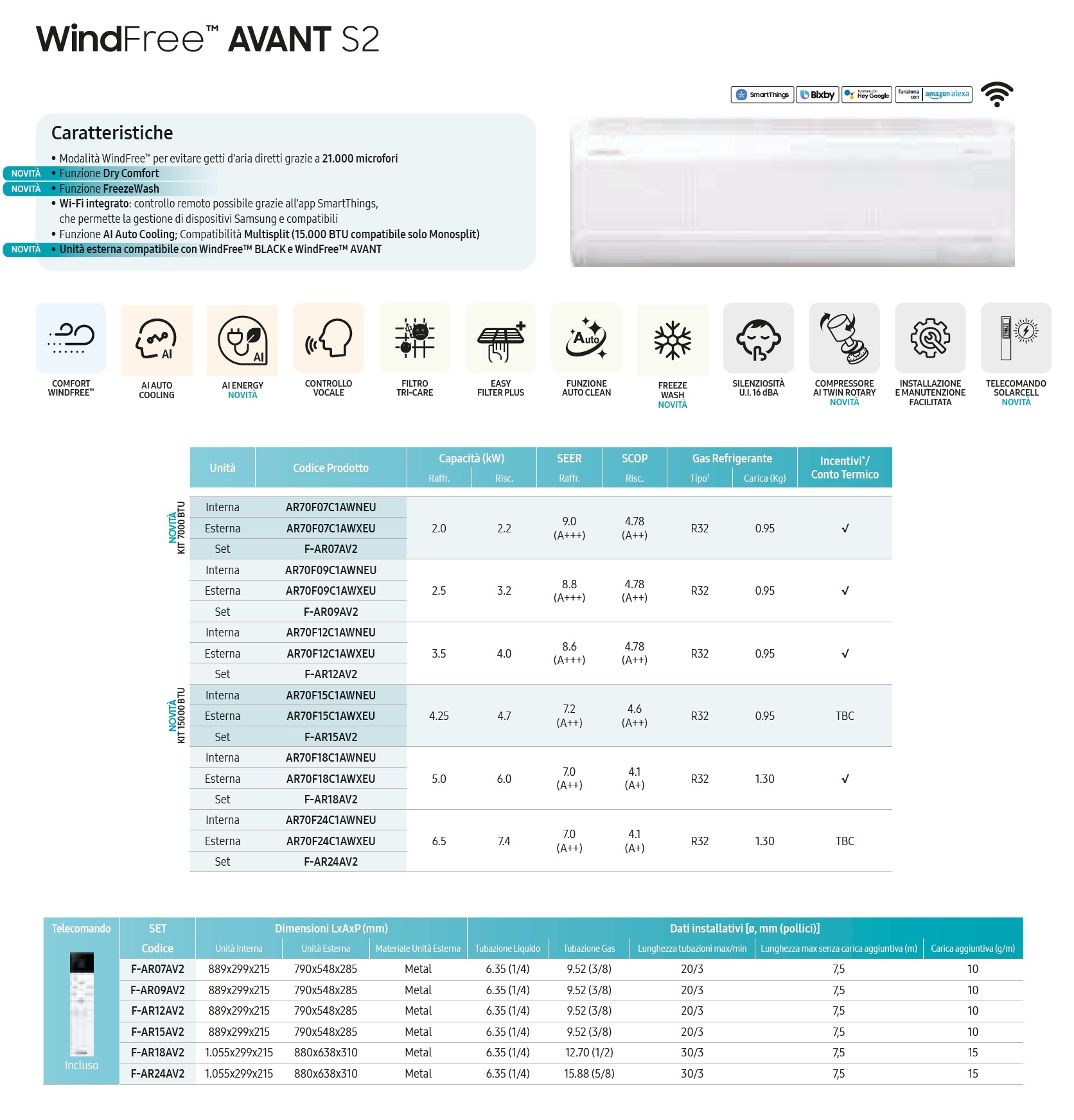 Samsung Mono Split Windfree Avant S2 15000 Btu AR70F15C1AWNEU AR70F15C1AWXEU Klimaanlagen Weiß WiFi 4.2 kW R-32