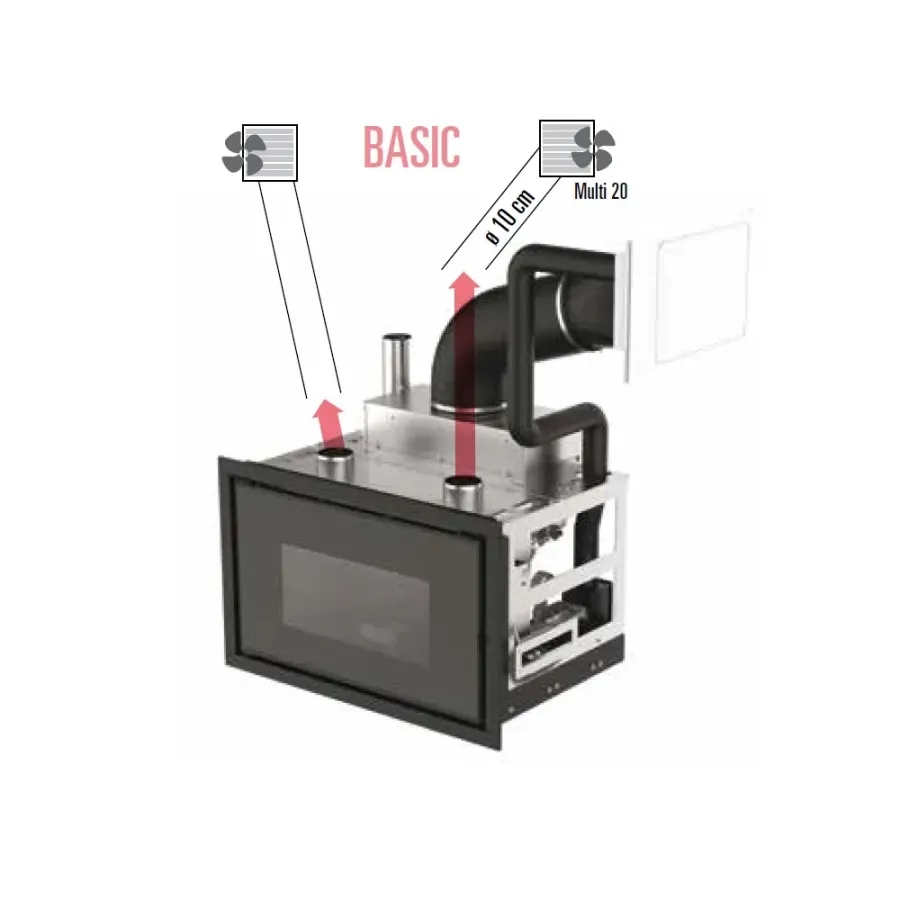 Comfort Air® transportiert warme Luft (80 °C) effizient in andere Räume bis zu einer Entfernung von maximal 8 Metern. Im Gegensatz zu herkömmlichen Systemen, bei denen die Lüftungsöffnungen hoch oben angebracht werden müssen, ermöglicht Comfort Air® eine freie Platzierung der Lüftungsöffnungen (auch in Bodennähe).