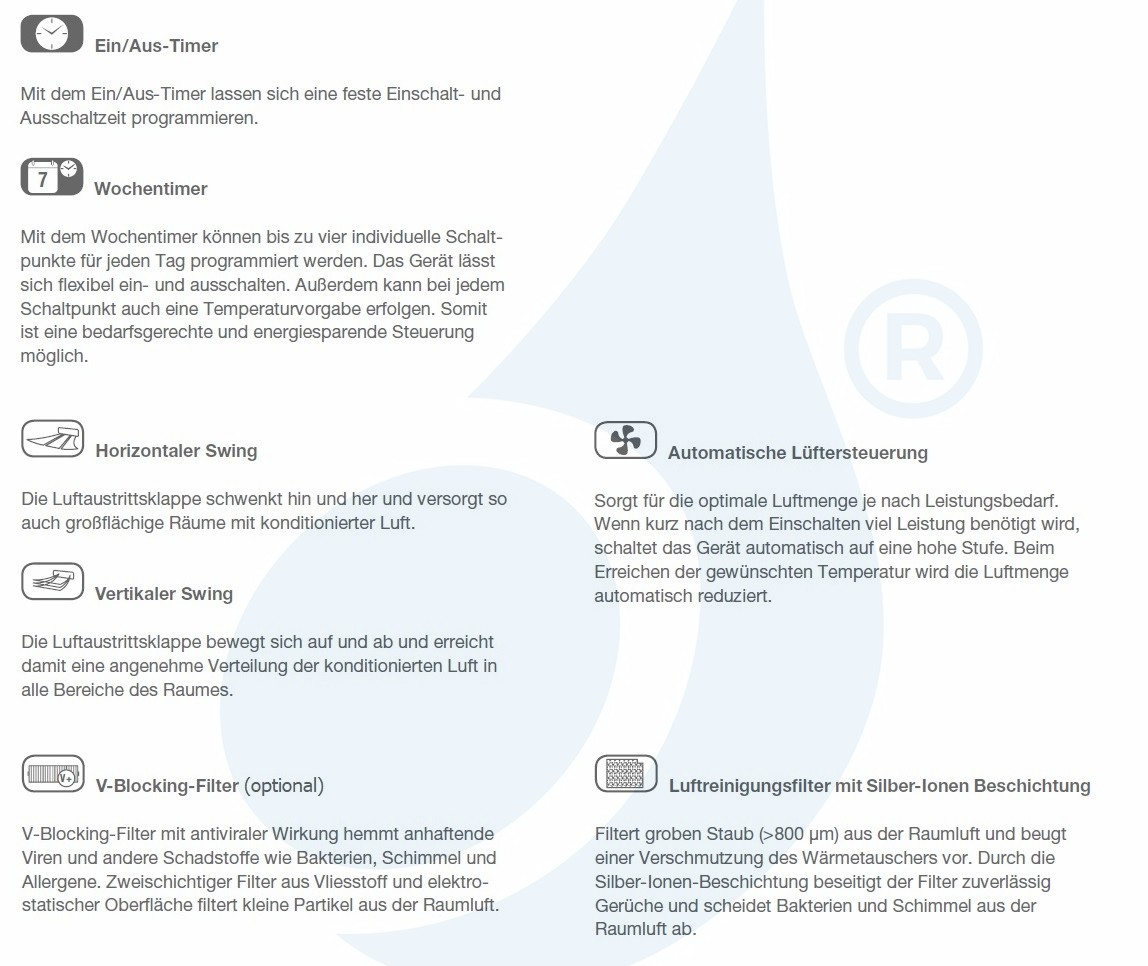 Standardmäßig ist das Gerät mit einer hochwertigen Kondensatpumpe mit einer Förderhöhe von 50 cm ausgestattet.Schnelle Installation dank kompakter Größe und geringem Gewicht