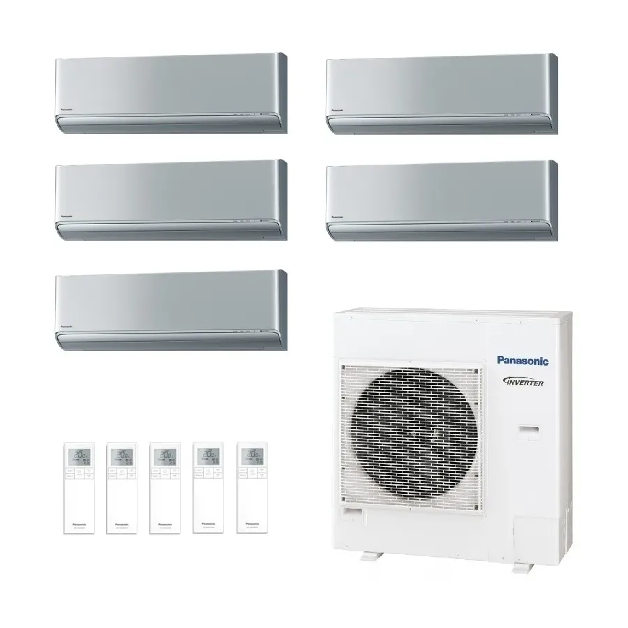 Panasonic Penta Split 3.5+3.5+3.5+3.5+3.5 kW CU-5Z90TBE 4 x CS-XZ35ZKEW + CS-XZ35ZKEW Klimaanlagen WiFi Silber R-32