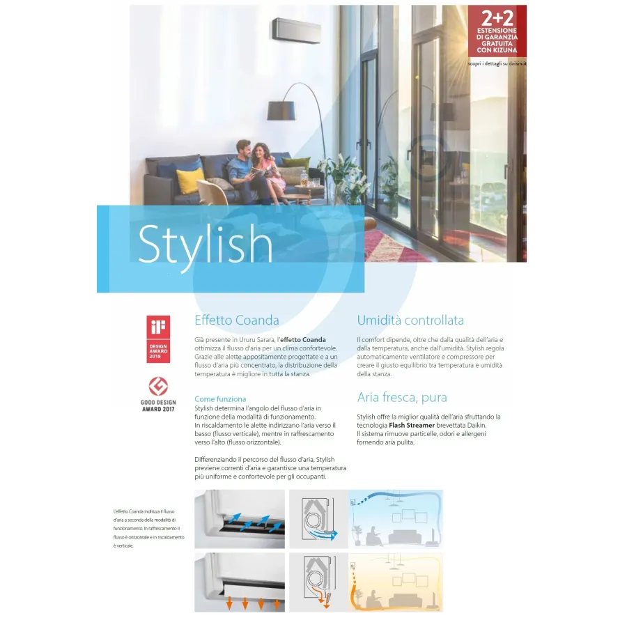 Die Stylish-Serie verfügt über das neue Flash Streamer-Luftreinigungssystem, das Schimmelpilze, Bakterien und Viren neutralisiert, bevor es saubere und gesunde Luft in den Raum abgibt.Komfort