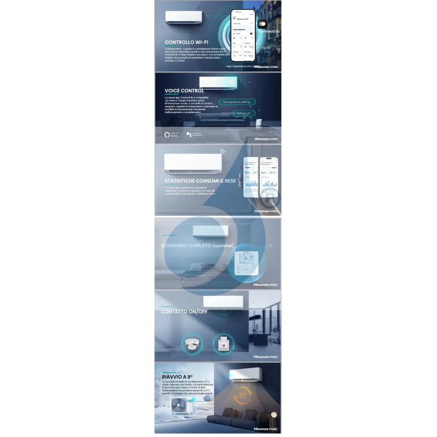 Hisense Quadri Split Hi Comfort 7+7+9+24 5AMW125U4RTA CF20YR4BG CF20YR4BG CF25YR4BG CF70BT2BG Klimaanlagen R-32 WiFi