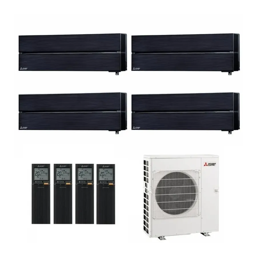 Klimaanlagen Mitsubishi Quadri Split Serie Diamond Schwarz Onyx WiFi 9000+9000+9000+18000 Btu Hocheffizienter Wechselrichter für Klimaanlagenwärmepumpen mit Steuerung. Klimaanlage mit Luftentfeuchter - heiß und kalt. Die neue Serie Kirigamine Style - Diamond ist eine hervorragende Lösung für neue moderne Möbel und in drei Farben erhältlich: Rubinrot, Perlweiß, Onyxschwarz.