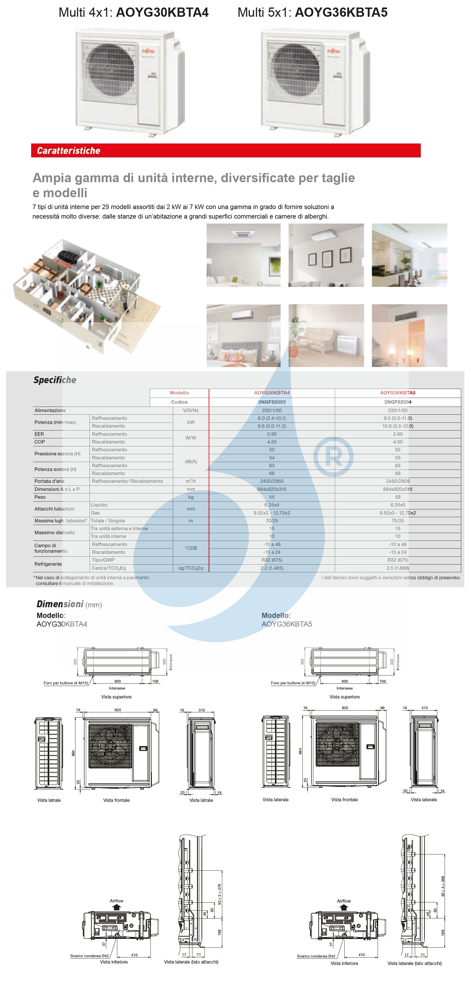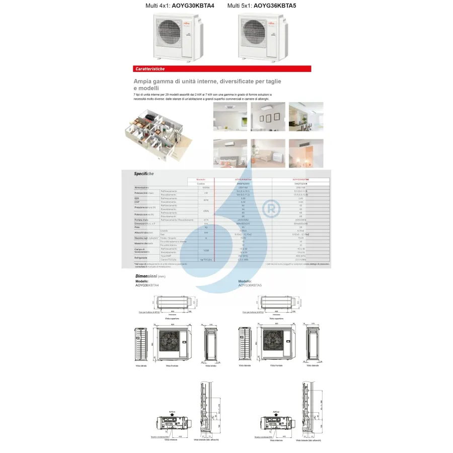 Ideal für Umgebungen ein Innengerät bis zu 36 mq + ein Innengerät bis zu 36 mq + ein Innengerät bis zu 36 mq + ein Innengerät bis zu 36 mq