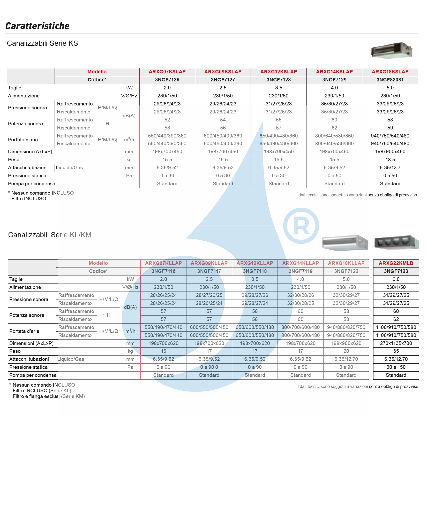 Kanalisierte Inneneinheit ARXG12KSLAP 12.000 BTU 3.5 kW Serie KS Mini Kanalisierter niedriger Kopf