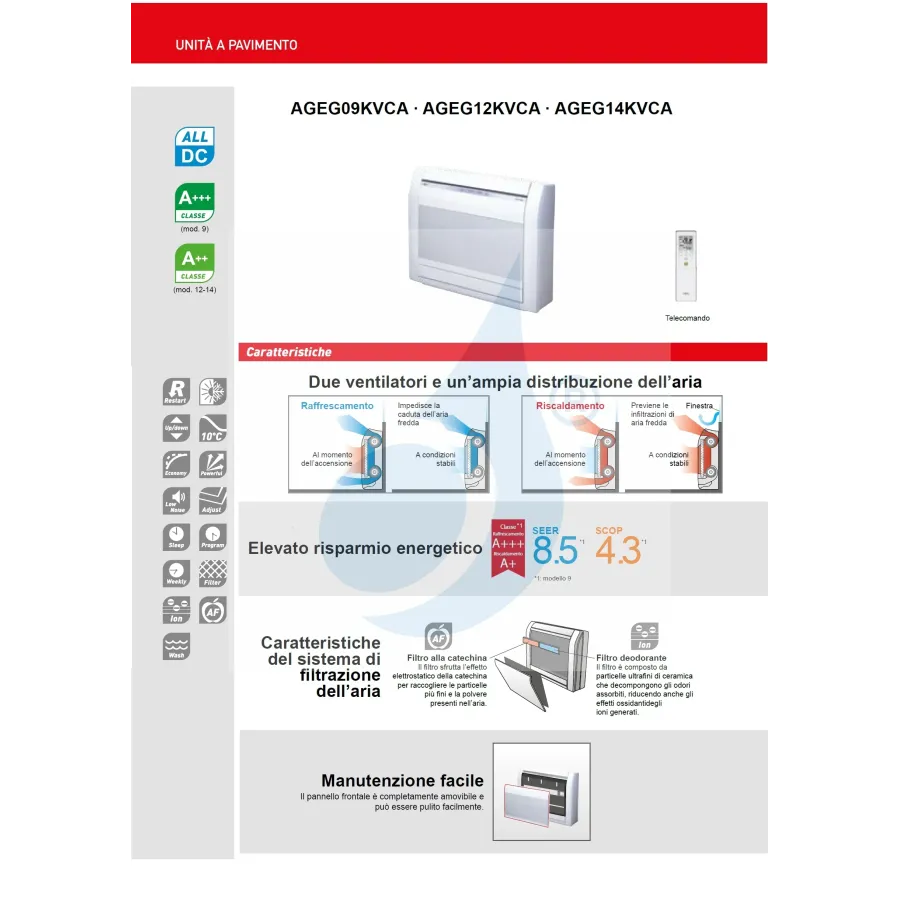 Bodeneinheit für den Innenbereich AGEG09KVCA 9.000 BTU 2.5 kW KV Floor Serie
