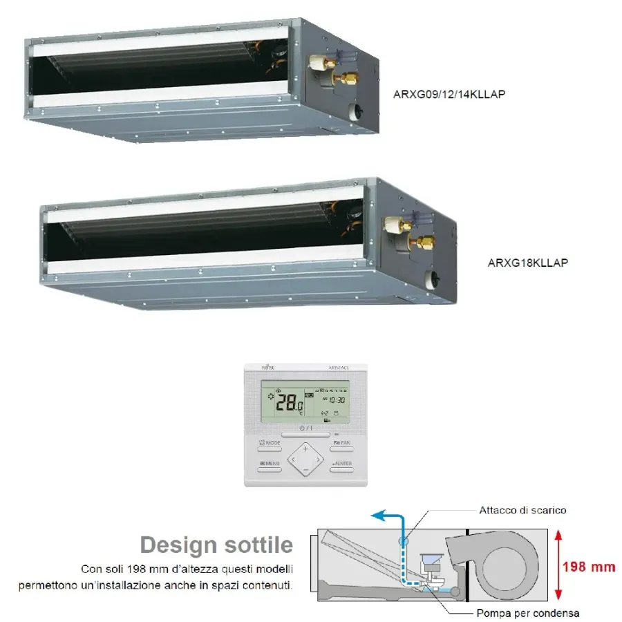 Interne Kanaleinheit ARXG09KLLAP 9.000 BTU 2.6 kW Kompakte Niederdruckpumpe der KL-Serie