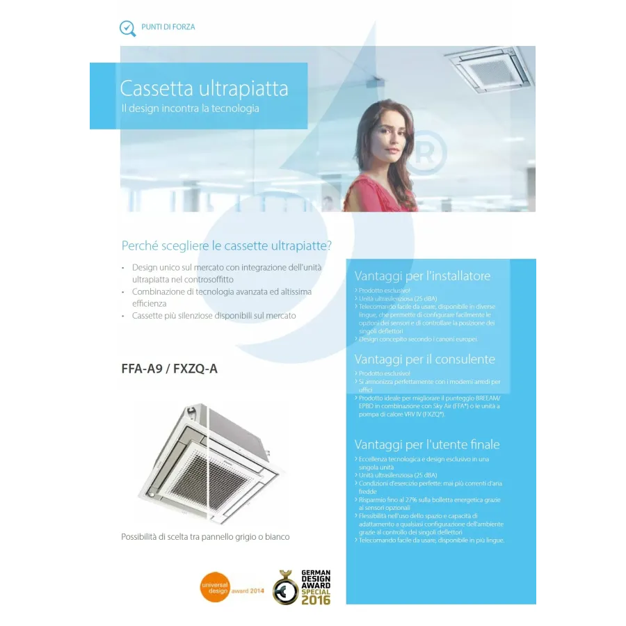 Klimaanlage Daikin Trio Split serie 4 vie FFA-A WiFi Optional 9000+12000+12000 Btu Heizung mit Schwachstrom-Absorptionswärmepumpe in hoher Energieklasse Einzigartiges Design auf dem Markt mit Integration der ultraflachen Einheit in die Zwischendecke